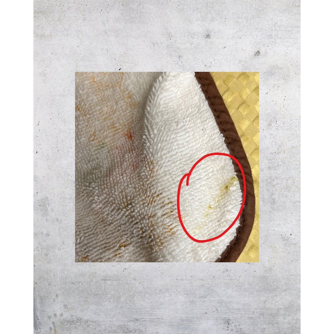 Retro kitchen-cute. Plush terry with scattered florals and a spice‑jar border, brown waistband/ties. Soft, absorbent, easy on + a couple tiny stains noted.