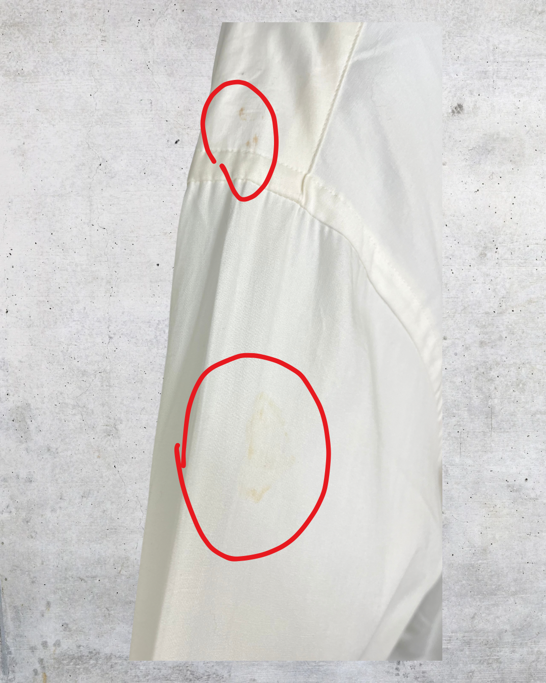 | Crisp and classic cream button-up from Bachrach — still rocking its original tags. Soft cotton with a sharp collar and chest pocket that says There’s a faint stain near the shoulder (see photo) that’ll likely wash right out, but I left it alone to keep the tags intact. |