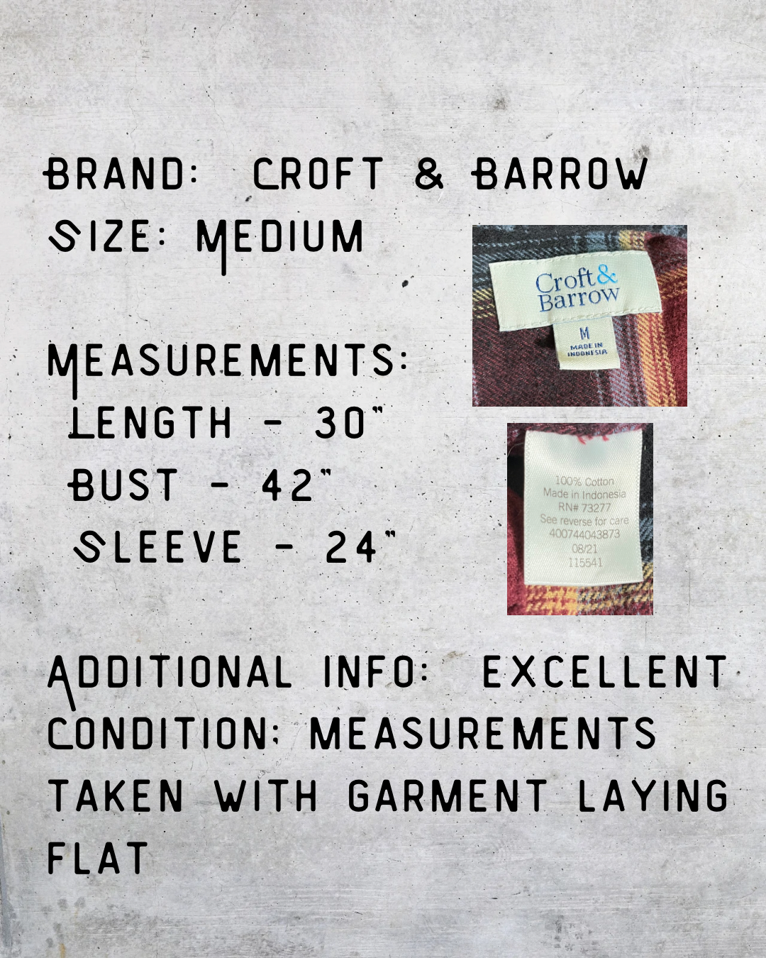 This classic Croft & Barrow plaid is the definition of easy, everyday flannel energy — soft 100% cotton, rich red + black tones, and that perfect relaxed fit that works layered or solo. Clean, cozy, timeless. Your cold-weather closet staple.