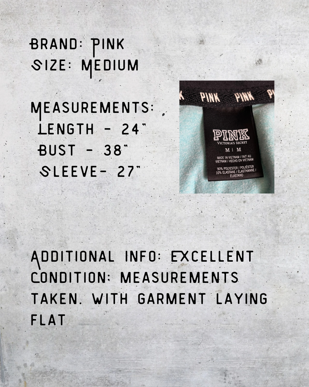 Mint-green PINK quarter zip with black logo details and cozy thumb holes on the sleeves. Soft, stretchy, and made for lounge days or coffee runs. Excellent condition.
