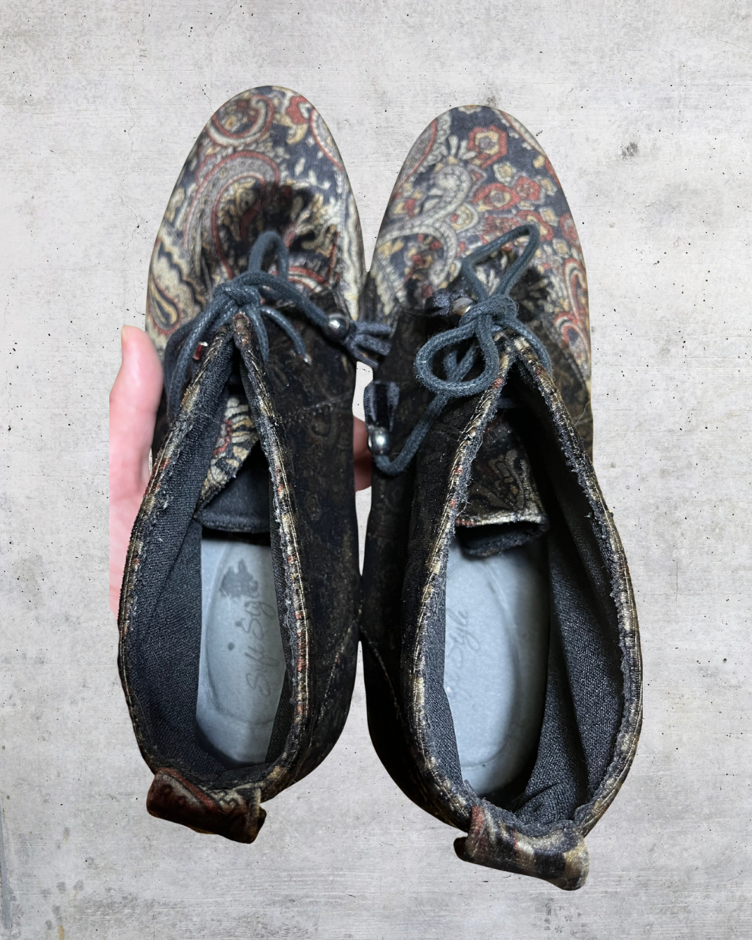 Vintage 90s Soft Style Paisley Tapestry Boots — Size 9