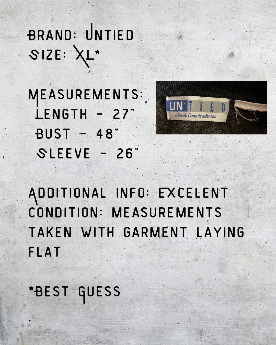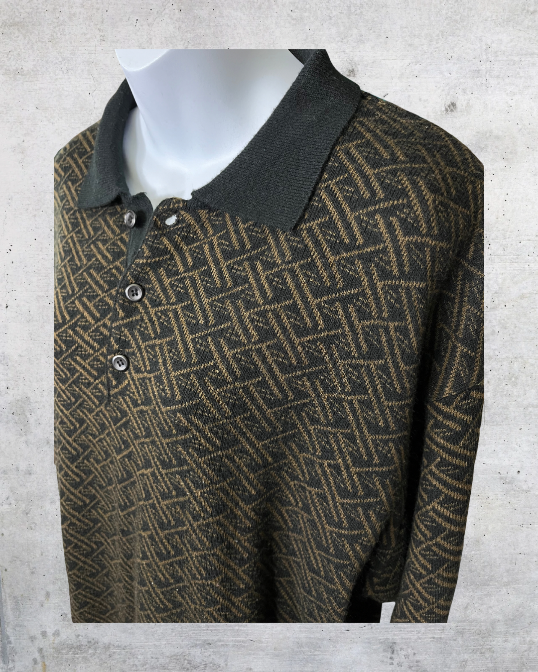 Vintage Untied textured knit pullover in deep brown and black tones with an all-over geometric pattern. Features a soft collar and short button neckline with a relaxed XL fit. Late-90s to early-2000s feel with an easy, natural look that works layered or on its own. Excellent condition.